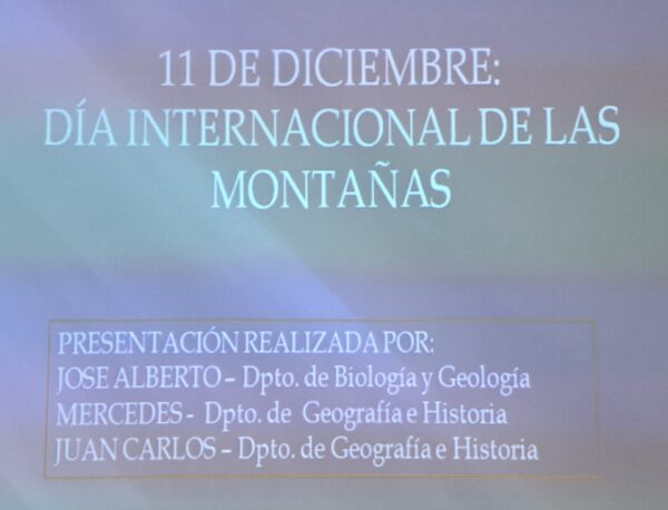Aprovechando la ocasión hemos querido celebrar el día de las montañas proyectando junto a secretaría una larguísima y espectacular presentación con las fotografías realizadas a lo largo de los años por profesores de los departamentos de Ciencias y Geografía e historia