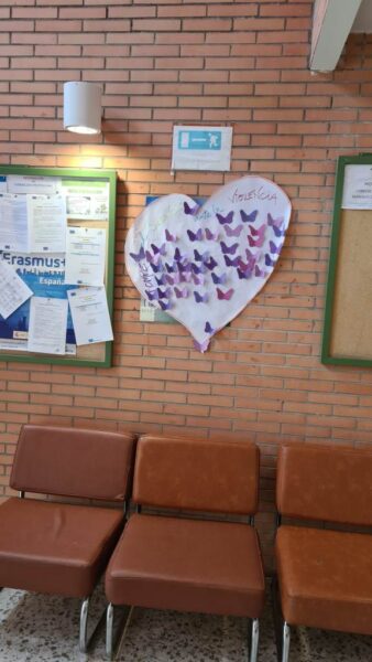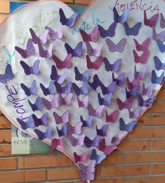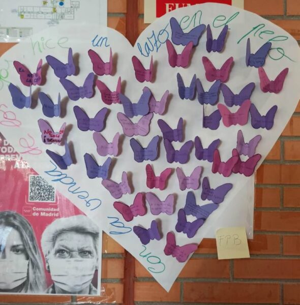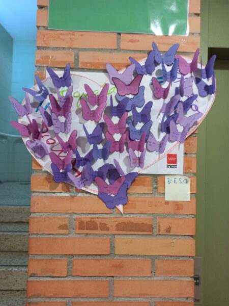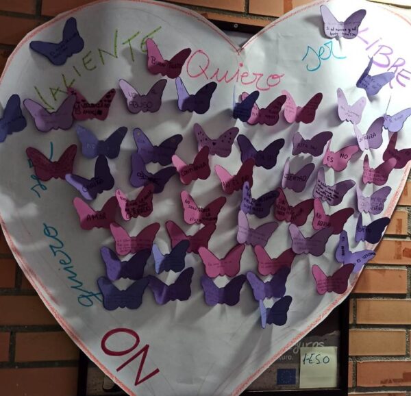 Organizada desde el departamento de Orientación, y ayudados (y asesorados) por el personal de control, los distintos tutores han desarrollado con sus alumnos una actividad que ha llenado el hall de corazones llenos de mariposas, en donde los alumnos de la ESO y FB han ido escribiendo sus deseos para unas relaciones sanas, de buen trato, sin violencias.