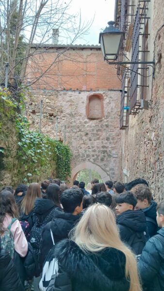Se dividieron en dos grupos y uno de ellos comenzó el ascenso por la calle mayor hasta el Castillo islámico para luego ver la muralla, judería, concejo y cárcel medieval e iglesias románicas.