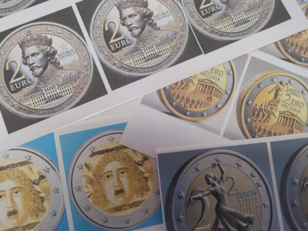 Llegaron los murales de todas las monedas de euro actuales.