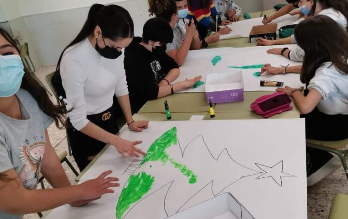 Elena, con algunos grupos de 1º Bach, 1º Compensatoria y 1º FPB ha realizado unos curiosos árboles. Os enseñamos las fotos de su elaboración