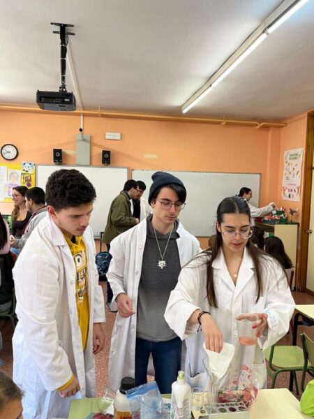 Las caras de asombro de los peques sacaron la mejor versión de nuestros estudiantes, explayándose en explicaciones de química, física y biología, hasta saciar el interés de l@s más atent@s.