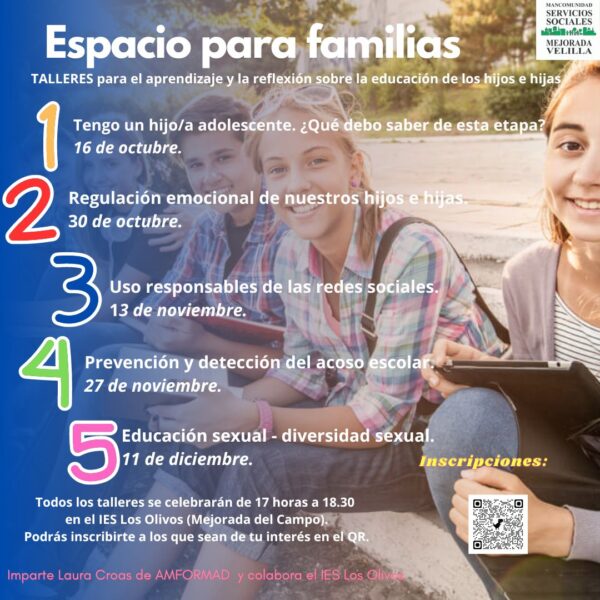 Lo imparte AMFORMAD. Lo realiza la Mancomunidad de Servicios Sociales Mejorada – Velilla y colabora el IES Los Olivos.