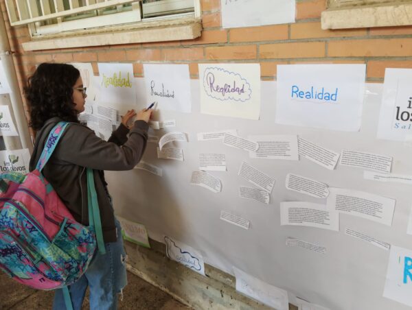 El pasado 10 de octubre, los estudiantes elaboraron un mural colaborativo en el patio del centro, en el que cada participante reflexionaba sobre si los enunciados propuestos eran reales o no.