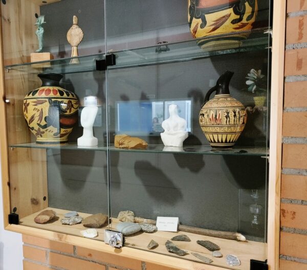 Si le echáis un vistazo podréis ver varias objetos que ahora mismo estamos dando en clase (lascas, puntas de flecha, restos de cerámica, pequeños bifaces…)