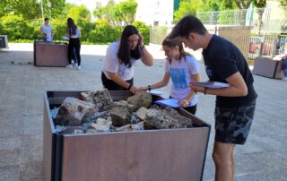 Los alumnos de 1º Bach. del X y el Z han estado reconociendo y estudiando rocas en nuestro jardín mineral que se encuentra en los contenedores junto a la entrada (Seguro que muchos de vosotros ni os habíais fijado en ellos)