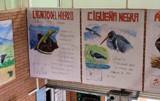 Tras dos años de trabajo, el equipo de José Alberto (especialmente María Escaño en las últimas realizaciones) ha cerrado su ciclo de dibujos sobre las especies en peligro con la cigüeña negra y el lagarto del Hierro. Ya lo podéis ver completo en las paredes superiores junto a secretaría