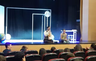 El 14 de febrero los de 1º y 2º de ESO nos enamoramos del teatro y de la ciencia en la representación de la obra Darwin 2.0. Imagina que estás preparando un trabajo sobre Cervantes, Newton o Martin Luther King y uno de ellos aparece en tu habitación junto a tu ordenador. ¡Sobresaliente asegurado! Fue una obra de teatro sorprendente y entretenidísima.